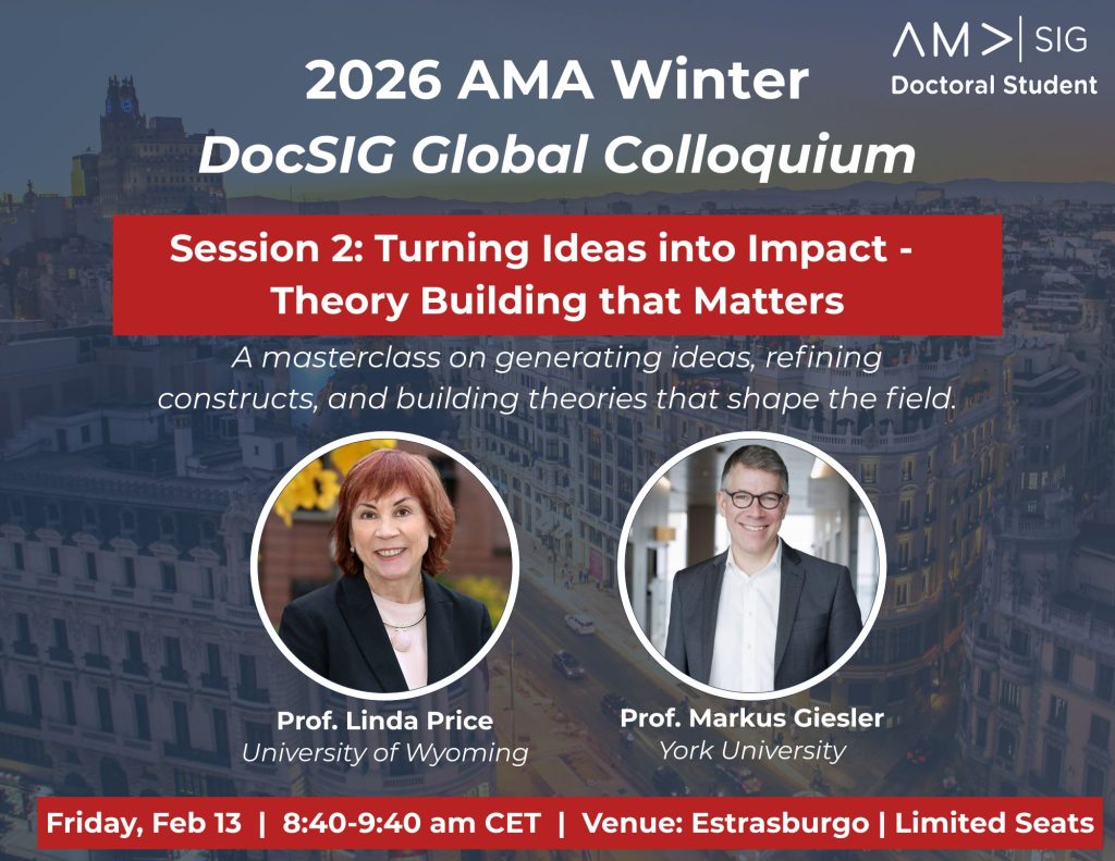 This session is part of the first-ever DocSIG Global Colloquium, hosted at the first-ever AMA Winter Conference in Europe—bringing together doctoral students and faculty from across the globe.
