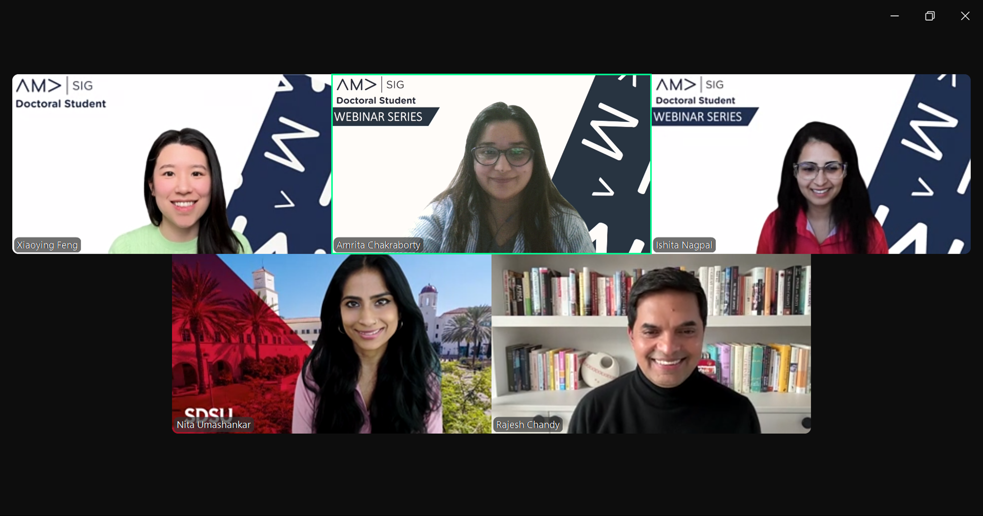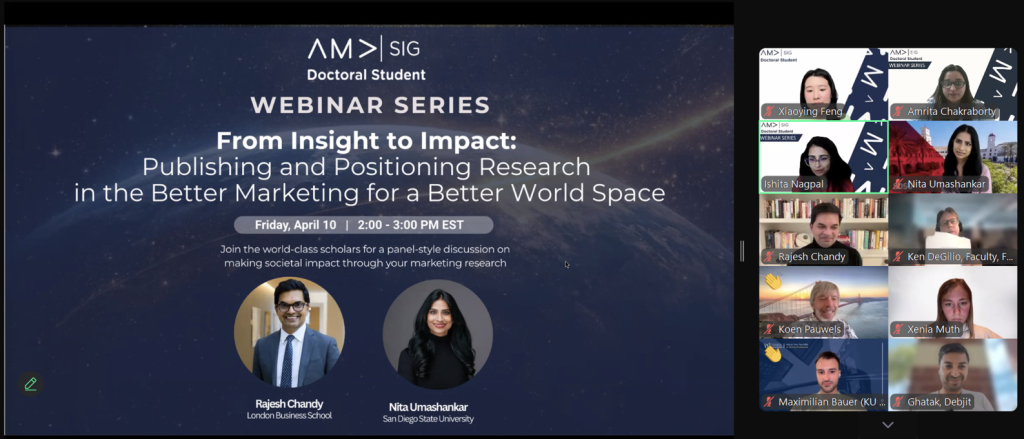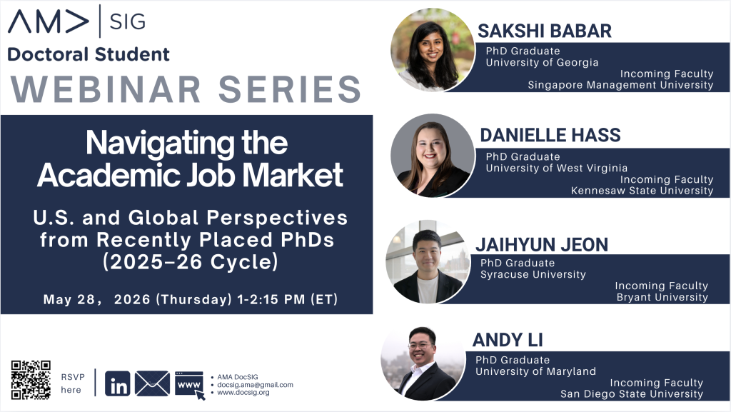 Thank you once again for being such a generous and valued part of the faculty community and for your incredible support of the doctoral student community! Our webinars are organized by Xiaoying Feng and Amir Alisha Syed. Proudly hosted by AMA DocSIG as part of our commitment to supporting the global marketing PhD community.