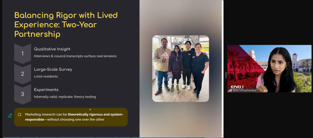 Thank you to Professors Rajesh Chandy and Nita Umashankar for an inspiring session. They tackled the real questions doctoral students face: How do you handle interventions ethically without depriving control groups of benefits? How do you balance publishability with genuine impact for the community we research for? What makes Better World research distinct in marketing—and will editors actually accept it? Their answers demonstrated passion for societal issues, and publishability is not mutually exclusive.