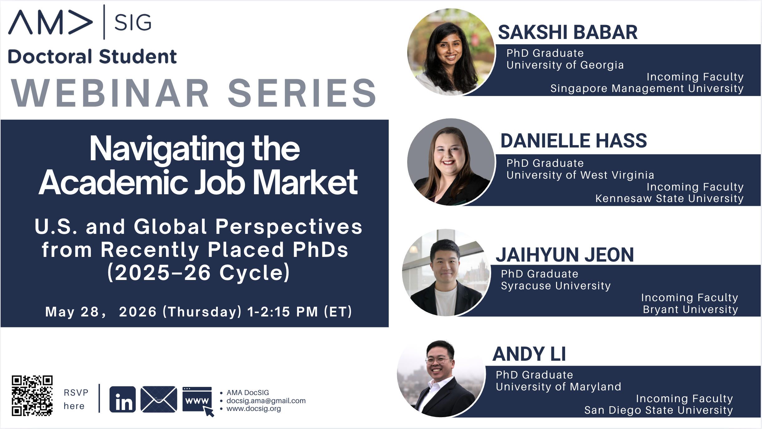🌟 Hosted by AMA DocSIG, supporting PhD students in their research journeys. For questions, reach out to our chair, Ishita Nagpal and the organizing team for Special Projects & Partnerships, Xiaoying Feng, and Amrita Chakraborty.