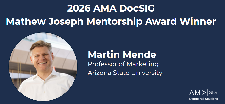 DocSIG is proud to announce that Dr. Martin Mende, Professor of Marketing, Arizona State University is the recipient of the 2026 AMA DocSIG Mathew Joseph Mentorship Award.